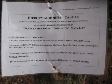 Изпращаме Ви сигнал за системно нарушаване на РЕГЛАМЕНТ (ЕC) № 995/2010 НА ЕВРОПЕЙСКИЯ ПАРЛАМЕНТ И НА СЪВЕТА от 20 октомври 2010 година. Фирма „Габровница” АД от 10 години преработва незаконно добита дървесина за плоскости от дървесни частици /ПДЧ/, в резултат на което в района на Държавно ловно стопанство /ДЛС/ Мазалат хиляди хектари незрели букови гори са разстроени безвъзвратно и подложени на унищожение от ветровали и снеговали. Преработените незаконнодобити дървесни материали, под формата на готови продукти от ПДЧ се търгуват в България, Турция и Европейския съюз. В момента текат процедури по сертифициране на Държавно ловно стопанство /ДЛС/ Мазалат и фирма „Габровница”АД по Forest Stewardship Council /FSC/ и съществува реална опасност преработените незаконно добити материали да присъстват на пазара като сертифицирани като продукти от FSC суровина.