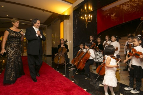 Фото 2. Дебора Раттер, Риккардо Мути и студенты музыкальной школы при Columbia College Chicago. 21 сентября 2013 года. Фото Тодда Розенберга
