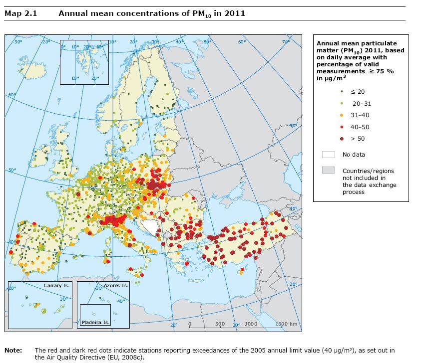 * Докладът може да се изтегли от тук – www.eea.europa.eu%2Fpublications%2Fair-quality-in-europe-2013%2Fat_download%2Ffile&h=dAQEBzHtE . По-долу може да се види карта, илюстрираща замърсяването на въздуха през 2011 г.
