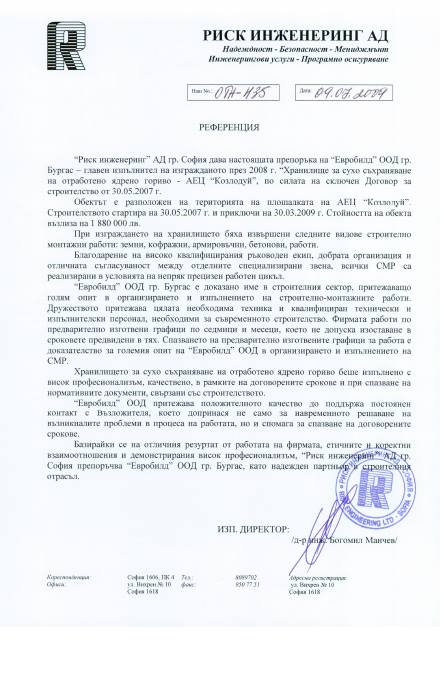 А зад цялата тази галиматия, освен изброените фигури, наднича и още един олигарх – енергийният бос Богомил Манчев. Именно неговата „Риск инженеринг“ и с неговия подпис е дала препоръка на „Евробилд“. Явно и той ги е осигурил с работа на площадката на АЕЦ „Белене“ като основен подизпълнител. Другият е фирма на Манчев. Сумата по онзи договор, по който са само те двамата е 108 млн. евро.
