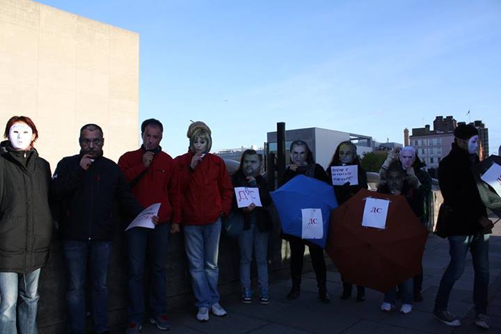 На 3 ноември, по повод деня на Вси Светии, протестиращи от групата ДАНСwithme Лондон инсцeнираха постановка с маски за гонене на призраците на ДС и злите сили на мафията и олигархията от България. За провеждане на демонстрацията беше избран мостът Ватерло, място със символичен характер от съвременната ни история, където е извършено покушението срещу българския журналист, писател и дисидент Георги Марков, за което има данни, че е организирано от ДС и КГБ.