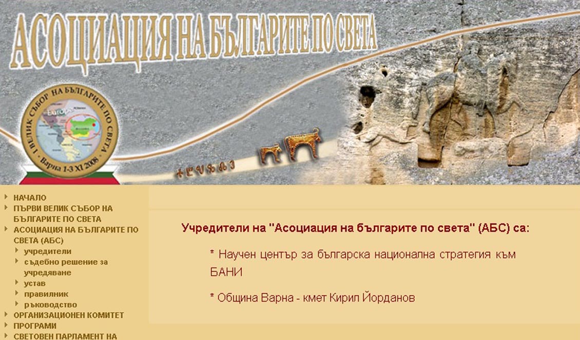 Учредители на „Асоциация на българите по света“ /АБС/ са Научен център за българска национална стратегия към т.нар. Българска академия на науките и изкуствата /БАНИ/ и Община Варна, в лицето на самия Кирил Йорданов като кмет. Асоциацията е учредена в началото на 2009 г., седалището й е във Варна.