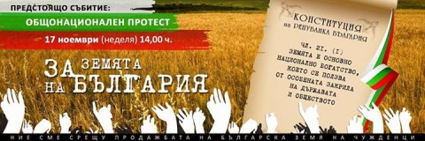 Български граждани, обединени във фейсбук група „Общонационален протест за земята на България“, организират на 17 ноември т.г. общонационален протест, който по тяхна информация ще бъде подкрепен и от българи в чужбина. Каква са тяхната кауза и техните аргументи може да се види в призива и в текста на информационна брошура във връзка с организирания протест, публикувани по-долу.