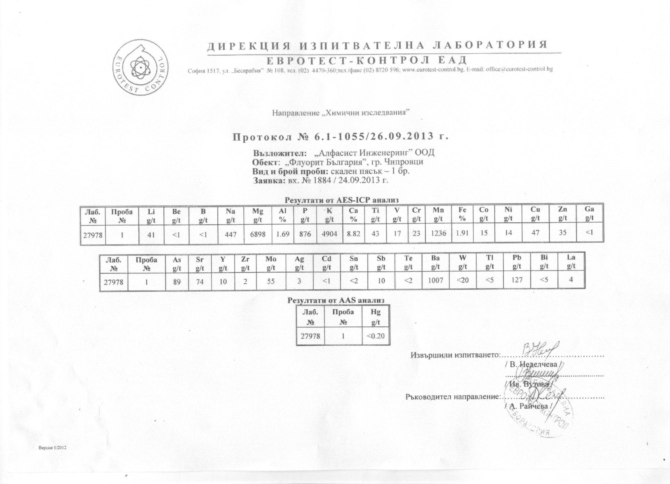 4. Да се верифицират двата налични Протокола за химични изследвания № 7830/23.12.2011г. и № 6.1-1055/26.09.2013г., извършени от една и съща акредитирана лаборатория “Евротест – контрол” ЕАД, като Компетентните органи преразгледат оценката по чл. 22б, ал. 4 от ЗПБ за категоризация на съоръженията за минни отпадъци в гр. Чипровци на “България флуорит” ЕООД, защото според данните от по-новия тук посочен протокол от 26.09.2013 г., се касае не за “категория Б”, а в “категория А” трябва да бъде хвостохранилището “Голям Буковец” – именно поради факта, че като минен отпадък този хвост съдържа опасни тежки метали, с риск за човешкото здраве и за околната среда и трябва да се класифицира като “опасен отпадък”, съгласно чл. 22 б, ал. 1, т. 3 от ЗПБ.