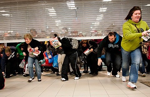 И тази година дванадесет големи вериги отвориха магазините си с обещания за агресивни намаления. Само в клона на Macy’s в Ню Йорк се изсипаха над 15 000 души, създавайки истинска лудница, по думите на очевидци.
