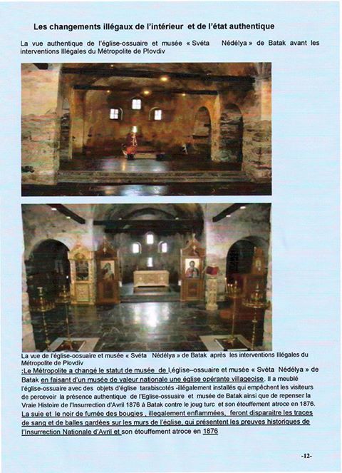 Текстът на Отвореното писмо на френски може да се види тук: APPEL AU SAUVETAGE DU PANTHEON DE LA LIBERTE BULGARE l’église-ossuaire et musée Svéta Nédélya de Batak