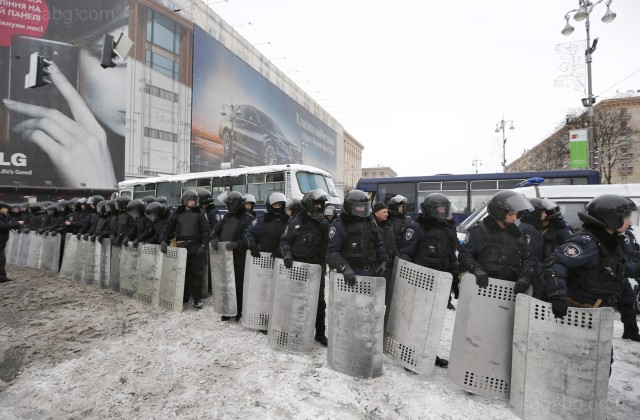Спецотрядът „Беркут“ и вътрешни войски обградиха около обяд „Евромайдан“, съобщи газета.ру, позовавайки се на очевидци. Камиони с войници на вътрешни войски преградиха „Крешчатик“ от страната на Европейския площад – на 150 м от барикадите на пл. „Независимост“. Виталий Кличко, лидерът на УДАР, призова протестиращите да направят жива верига и да спрат „Беркут“. Той помоли жените и децата да напуснат площада.