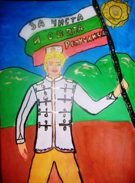 Бел.ред.: Рисунката, послужила за плакат на тазгодишния конкурс, е на 10-годишния Цветан Николов. Тя е участвала в първото издание на конкурса. По-надолу можете да видите други детски рисунки, участвали в първото издание на Международния конкурс за Васил Левски.
