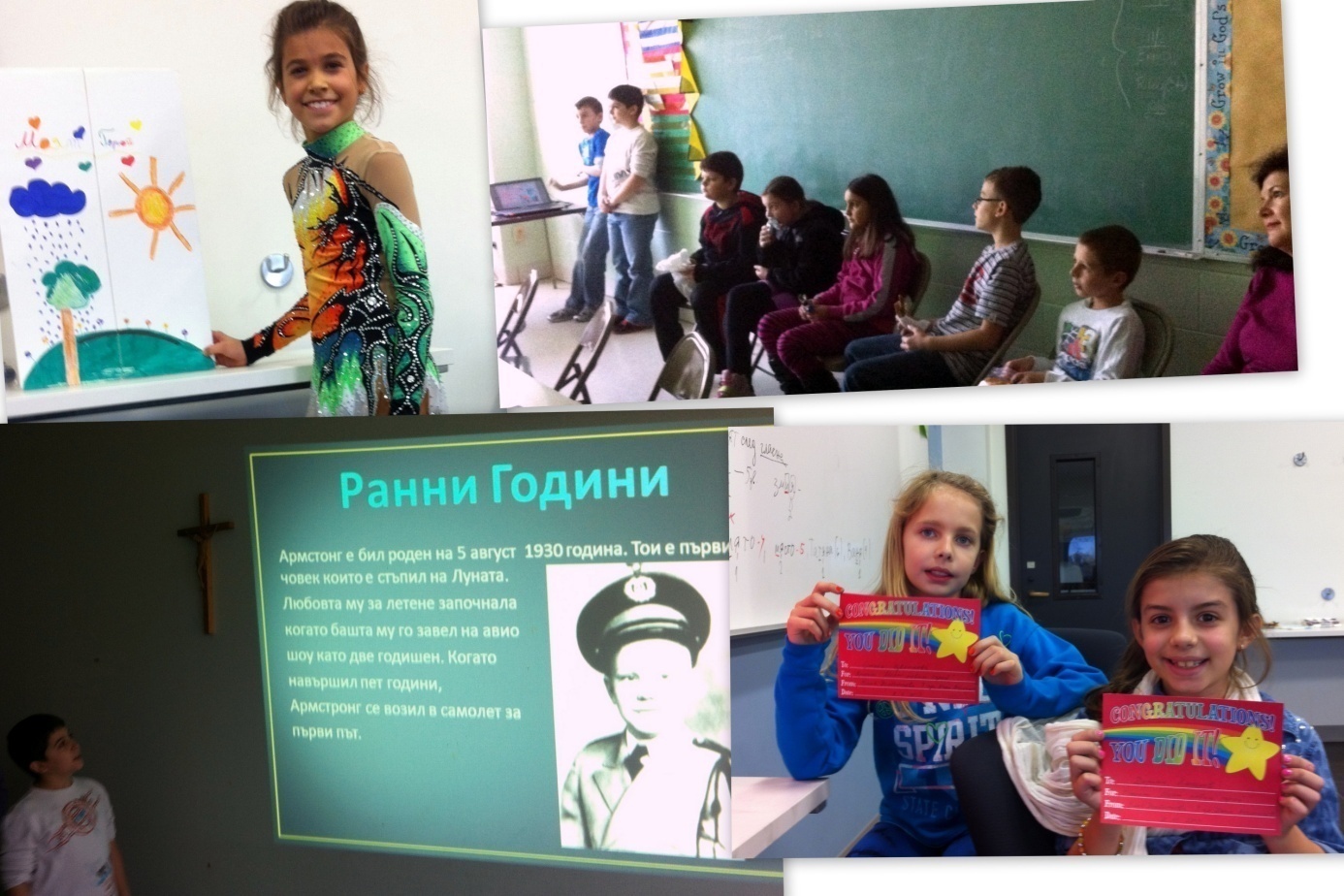 Часове за формиране на комуникативно-речеви умения в 4-ти клас. Тема на проект: „Моят любим герой”. Първото представяне пред публика е съпроводено с изработени от учениците power-point презентации, табла и костюми.