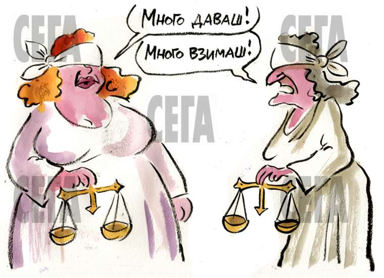 Усетих нещо вкусно във въздуха. Излязох на разходка. Стигнах до сградата на дрисльовците и гледам – отпред се вият огромни опашки. На стълбите между лъвовете, чинно подредени един до друг, застанали в поза партер – алена тога до черна тога. Прокурор, съдия, прокурор, съдия … разбрах защо ухае на палачинки – до всеки надупен магистрат, стои по един човек със сопа и я подава на всеки следващ гражданин от опашката. И той – блъска ли, блъска. Удрят хората, не се шегуват. Нещо подобно бях виждал навремето, като изкарат килимите по лостовете в градинките между блоковете. И като почнат да ги тупат… леле що прах се вдигаше!