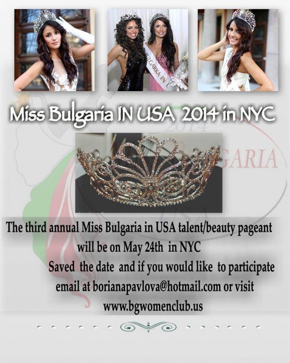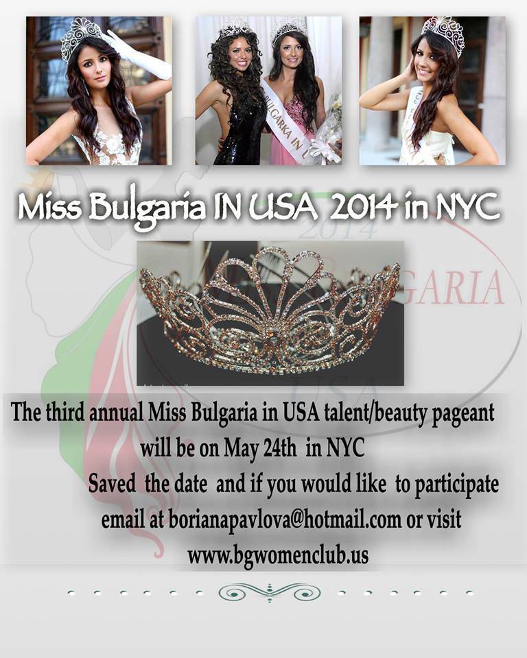 На 24 май 2014 г. в Ню Йорк ще бъде проведен за трети пореден път конкурса за красота МИС БЪЛГАРИЯ в САЩ (Miss Bulgarka in US). В него могат да участват всички български момичета, които живеят на територията на САЩ. Те ще се състезават в няколко кръга, но най-важният от тях ще бъде кръгът на таланта.