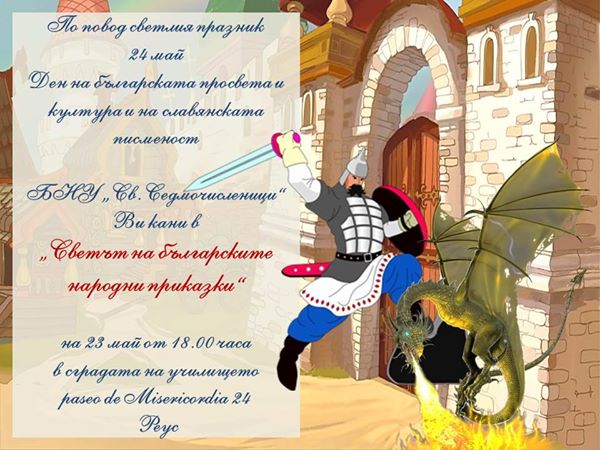 По случай 24 май – деня на българската просвета и култура и на славянската писменост, Българско неделно училище „Свети Седмочисленици“ в Реус, провинция Тарагона, Испания, кани деца и родители на празник, озаглавен „Българските народни приказки“.