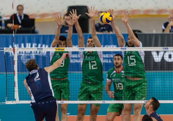 Петият решителен гейм стартира също равностойно до 3:3, след което България поведе с 5:3 след блокада на Ники Николов и технично отиграване при мрежата на Тодор Алексиев. Въпреки тайм-аута за Джон Спероу, последва атака в аут на Карсън Кларк и 6:3. Размяната на полетата пък дойде при 8:5 за българските момчета след блок-аут на Цецо Соколов. Последваха две грешки на България и блокада на Тейлър Сандър и 8:8. САЩ дори дръпнаха с 9:8 след ас на Матю Андерсън. Последва нов обрат и 10:9 за България след атака на Скримов и ас на Ники Николов. След второто прекъсване за Джон Спероу, последваха грешка на Сандър в нападение и нова отлична атака на Скримов и 12:9. В крайна сметка България взе тайбрека с 15:12 след атака през центъра на Виктор Йосифов, а с това и победата с 3:2. Най-полезен за българския тим стана Тодор Скримов със 17 точки (4 аса, 1 блок, 43% ефективност в атака и 50% перфектно посрещане), а Цветан Соколов добави още 14 точки (2 аса и 29% ефективност в атака) за драматичната победа. За американците Тейлър Сандър (4 блока, 1 ас, 50% ефективност в атака и 43% перфектно посрещане) и Матю Андерсън (2 блока, 3 аса и 29% ефективност в атака) реализираха съответно 18 и 15 точки, но и това не бе достатъчно за успеха. САЩ – БЪЛГАРИЯ 2:3 (24:26, 17:25, 25:14, 25:13, 12:15) САЩ: Кавика Шоджи 3, Тейлър Сандър 18, Матю Андерсън 15, Шон Рууни 7, Дейвид Лий 6, Максуъл Холт 13 – Ерик Шоджи-либеро (Карсън Кларк 8, Майка Кристенсън 2) Старши-треньор: Джон Спероу БЪЛГАРИЯ: Добромир Димитров 4, Цветан Соколов 14, Тодор Алексиев 11, Тодор Скримов 17, Виктор Йосифов 6, Николай Николов 9 – Теодор Салпаров-либеро (Николай Пенчев 1, Венелин Кадънков) Старши-треньор: Камило Плачи.