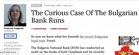 България може да е малка, но със сигурност не е маловажна. Банковата система на Балканите е тясно взаимосвързана и рисковете за нея застрашават и останалата част от Европа чрез австрийски, френски и италиански банки. Сериозна нестабилност в българската банкова система може да причини системна криза далеч отвъд границите на страната, така че ЕС би трябвало да обърне на това повече внимание, завършва анализът във „Форбс“.