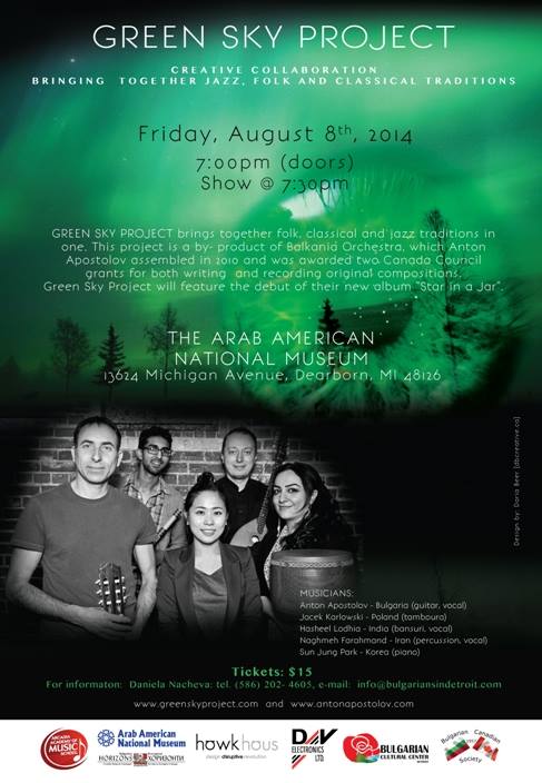 Green Sky Project uses these traditional elements in a more contemporary manner that does compliment the style of the compositions in the music they perform. This project is a by-product of the Balkania Orchestra, which Anton Apostolov did put together in 2010 and was awarded two Canada Council grants for both writing and recording original compositions that drew from his Bulgarian roots and other forms of world music.