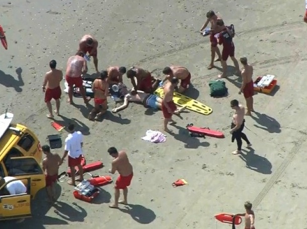 Четирима от тях са получили медицинска помощ още на плажа, а останалите са били отведени в болница. 20-годишен мъж, откаран в болница „Марина дел рей“, по-късно е починал. Още един човек е в критично състояние, каза Мейн и допълни, че сред пострадалите има 15-годишно дете.