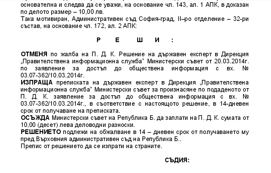 Тези граждански заявления бяха подадени към Министерски съвет. По тях Правителствената информационна служба започна да отговаря с откази за достъп до информация и започнаха споменатите жалби и дела в съда по тези жалби. На практика един и същи казус става за пореден път предмет за различни дела в Административен съд – София-град.