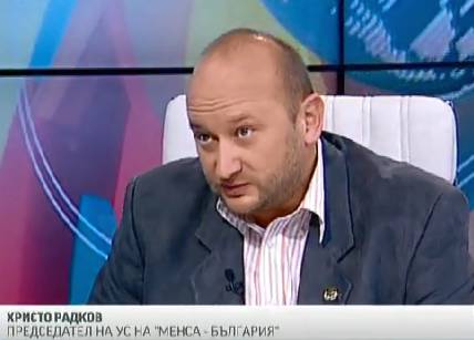 * Запис от интервюто на Христо Радков (Хинко), председател на УС на „Менса – България“, за предаването „Преди всички“ на програма „Хоризонт“ на БНР, добавен впоследствие към публикацията. (Кликнете с мишката в малкото триъгълниче в ляво, под снимката, за да го чуете.)