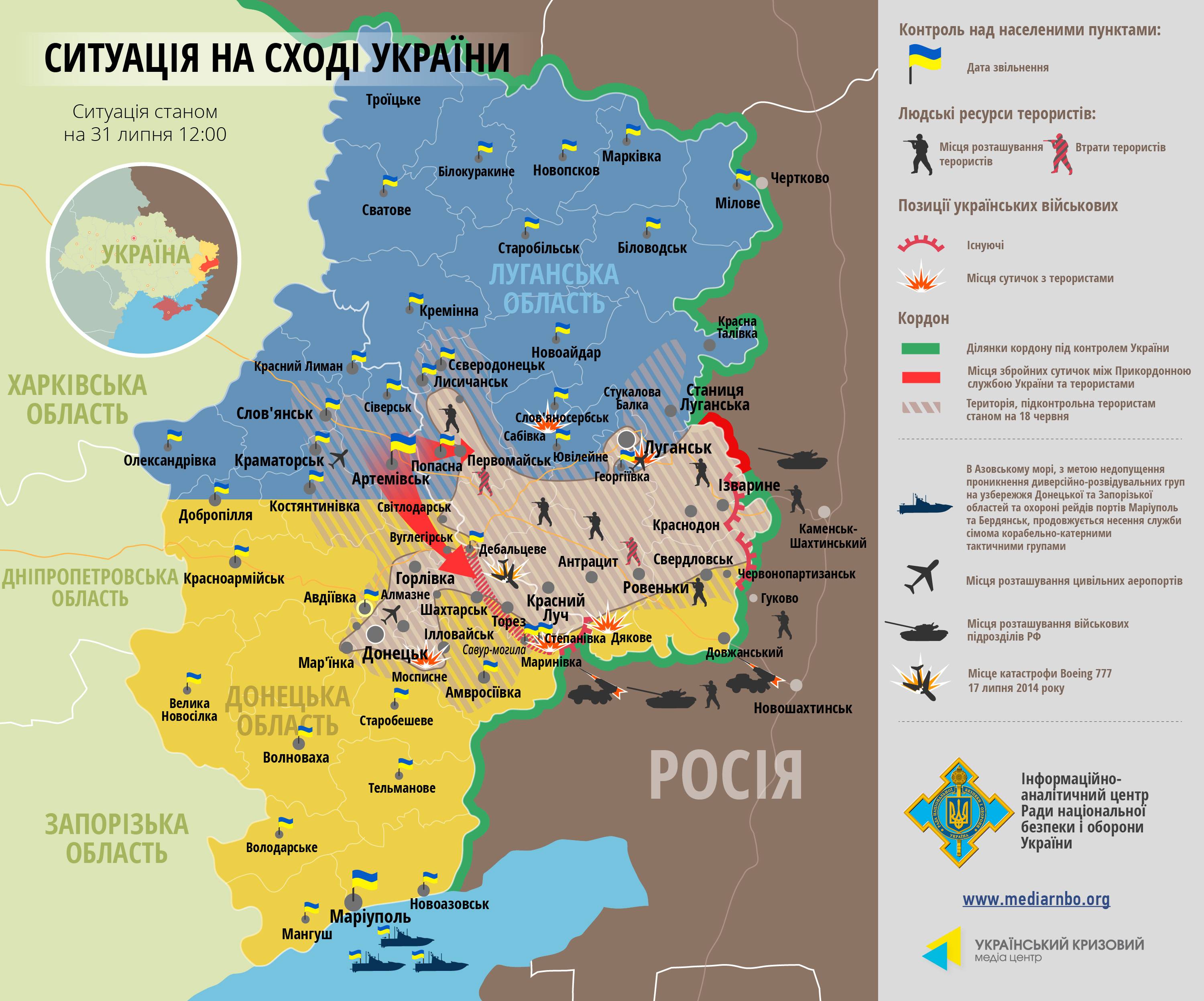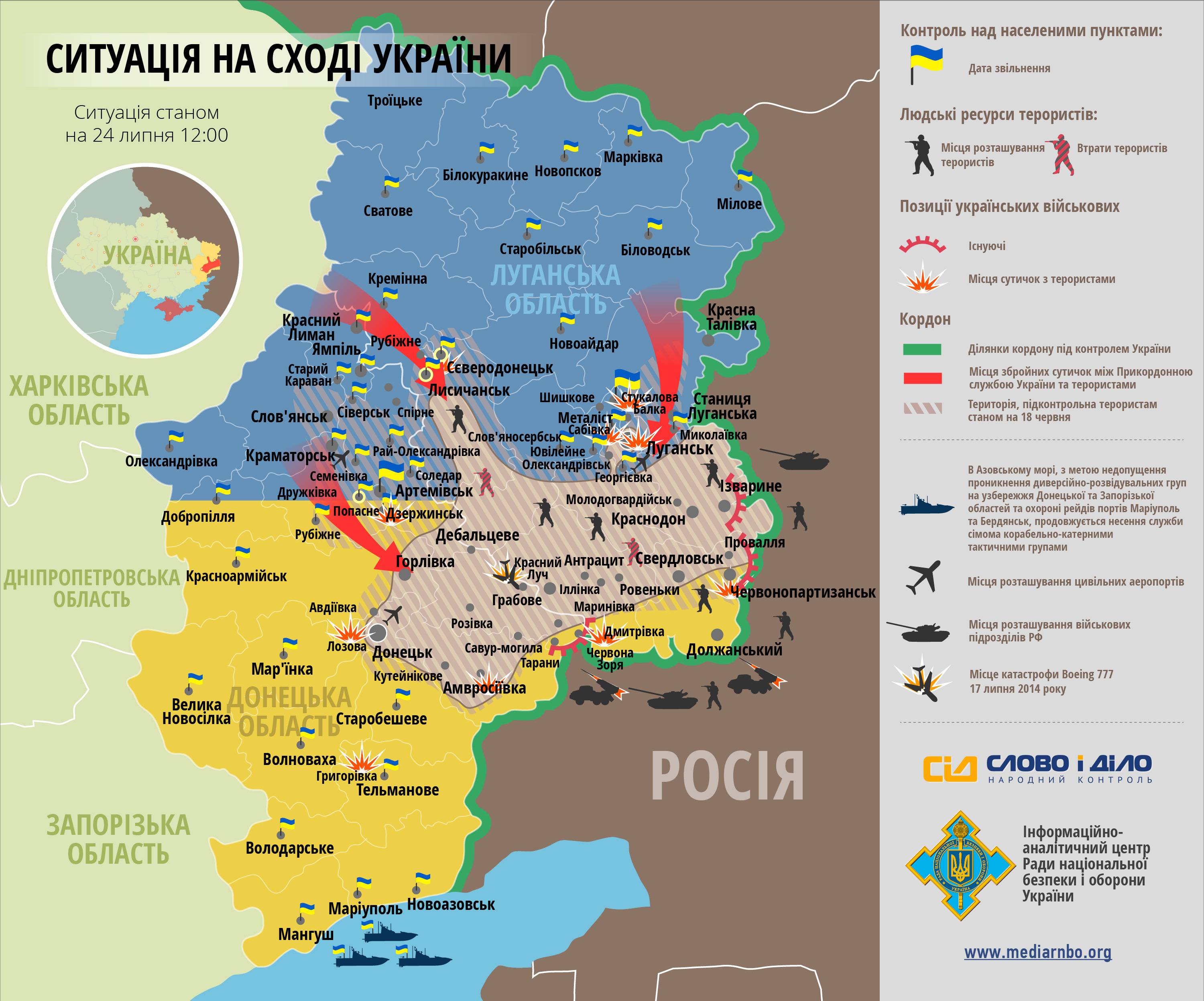 Как се изменя ситуацията в Източна Украйна и какви позиции са заети от воюващите сили, къде и какви боеве са се водили?