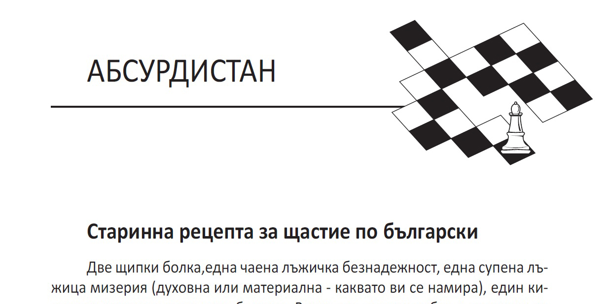 Началото на първа глава от сборника, която се нарича „Абсурдистан“