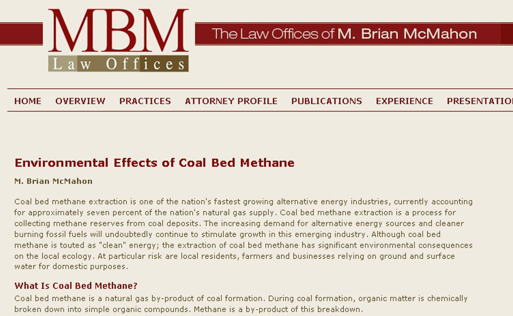 Coal bed methane extraction is one of the nation’s fastest growing alternative energy industries, currently accounting for approximately seven percent of the nation’s natural gas supply. Coal bed methane extraction is a process for collecting methane reserves from coal deposits. The increasing demand for alternative energy sources and cleaner burning fossil fuels will undoubtedly continue to stimulate growth in this emerging industry. Although coal bed methane is touted as „clean“ energy; the extraction of coal bed methane has significant environmental consequences on the local ecology. At particular risk are local residents, farmers and businesses relying on ground and surface water for domestic purposes.