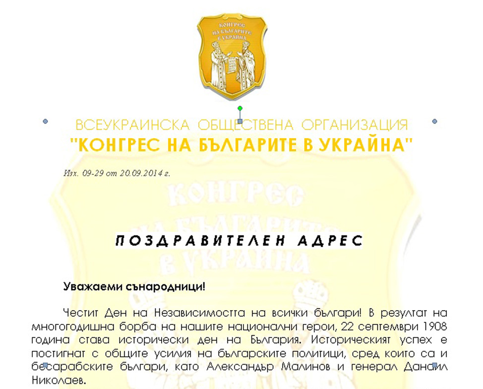 ОТ КОНГРЕС НА БЪЛГАРИТЕ В УКРАЙНА