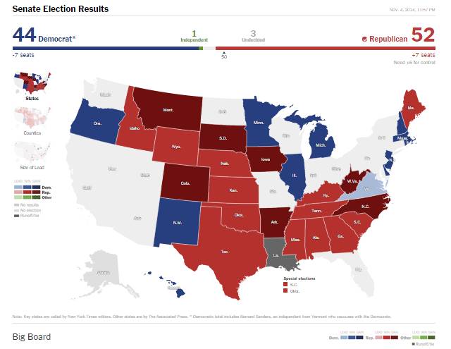 Републиканският сенат ще има значителна власт по бюджетните въпроси и способност да блокира номинираните от Обама кандидати за ключови постове. Освен това той ще постави партията в добра позиция за президентските избори през 2016 година.