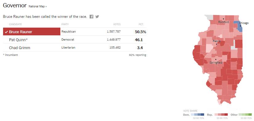 Governor: Bruce Rauner has been called the winner of the race.