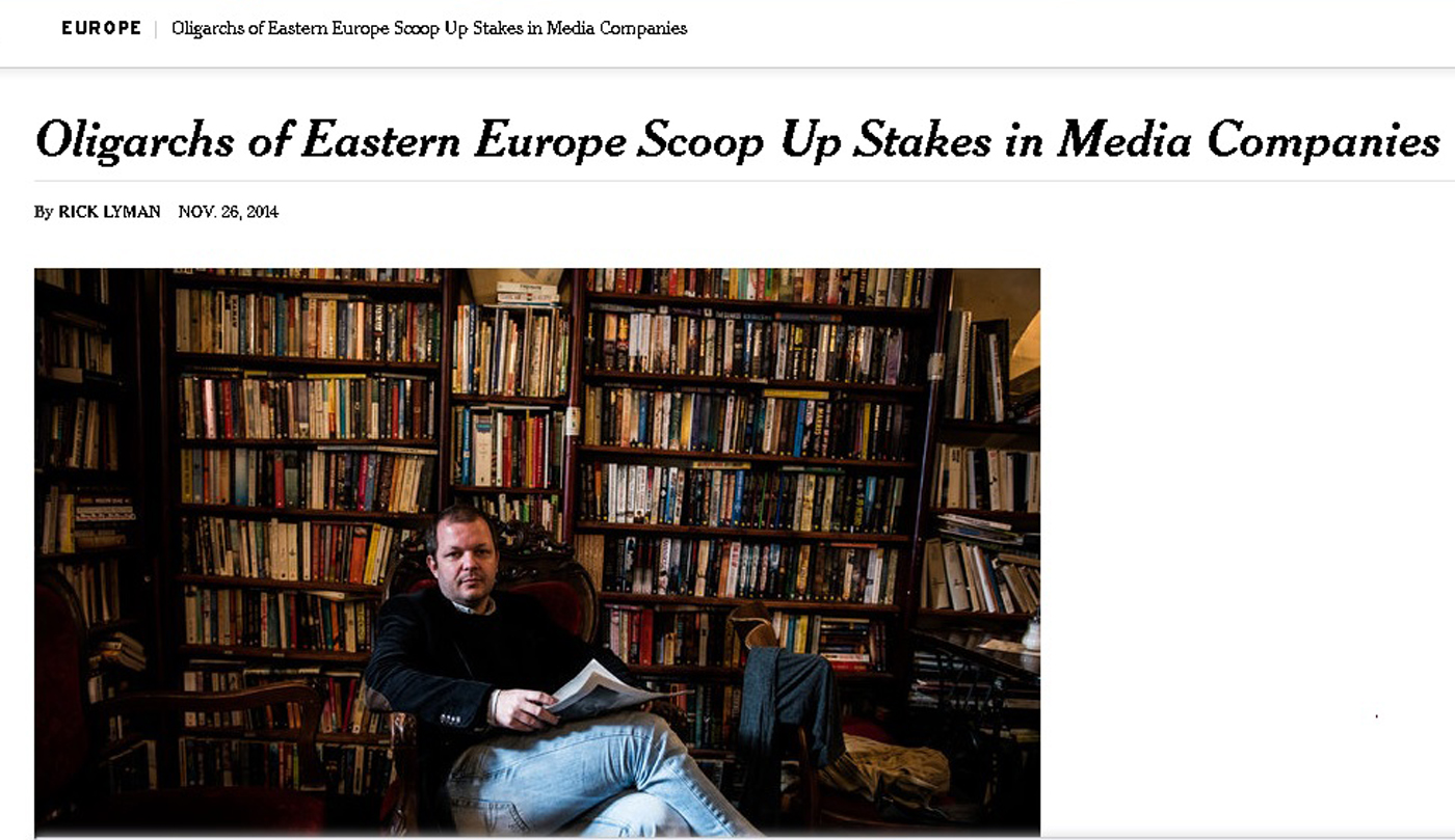 Олигарси и инвестиционни компании в Източна Европа купуват вестници и други медийни организации, предизвиквайки сериозна тревога за свободата на словото сред журналистите и не само сред тях – пише Rick Lyman в The New York Times. В публикацията се назовават няколко собственици на медийни империи, сред които и депутатът от ДПС Делян Пеевски.