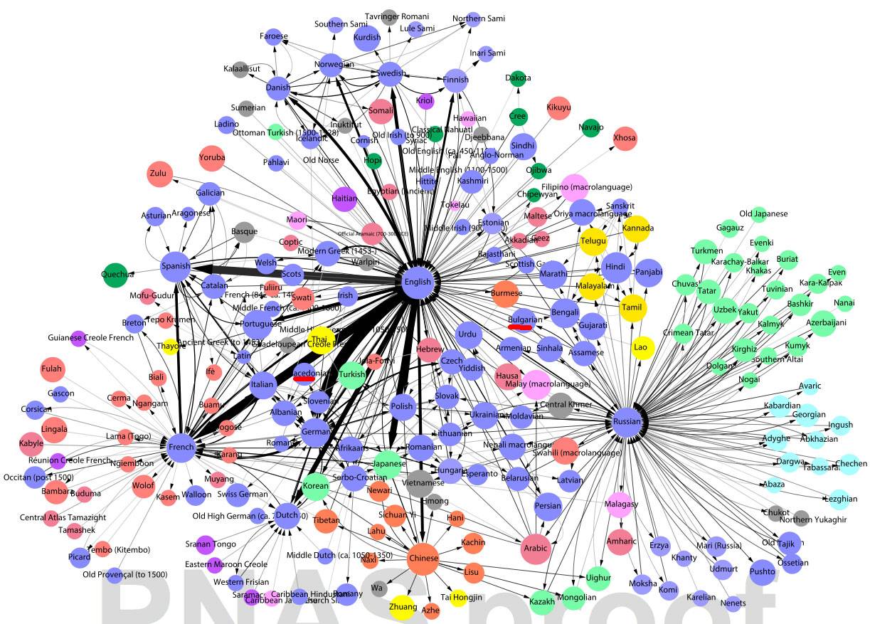 Учени* oт няколко университета са предложили нов метод за изчисляване на глобалната значимост на международните езици – т.е. на тези, на които общуват помежду си значителен брой хора от различни страни по света. Изследователите са съставили карта за контактите на основните езици на планетата и са установили, че китайският и арабският езици, въпреки огромния брой хора, които говорят на тях, отстъпват по влияние не само на английския, но и други европейски езици.