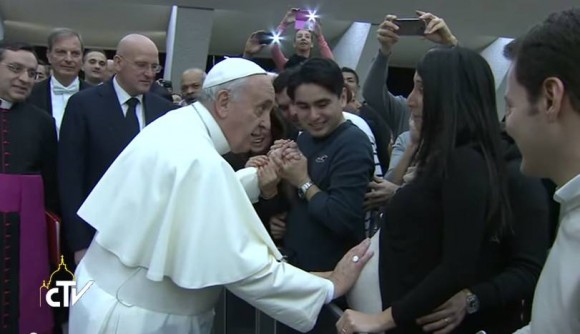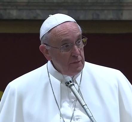 On Dec 22, 2014 Pope Francis meets with employees of the Holy See and of Vatican City State, with their families, to exchange Christmas greetings.