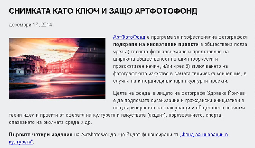 АртФотоФонд ще подпомага безплатно културни проекти.
