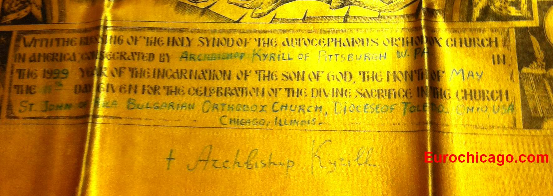 inscription around: „Bulgarian Eastern Orthodox Church – Diocese of the United States of