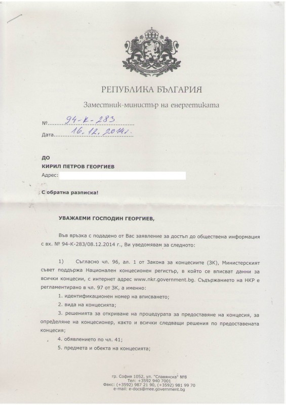 Този, дето се е подписал отдолу, си позволява да откаже достъп до договорите за нефтените и газовите концесии в България на български гражданин под предлог, че: