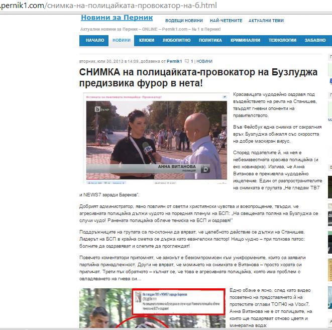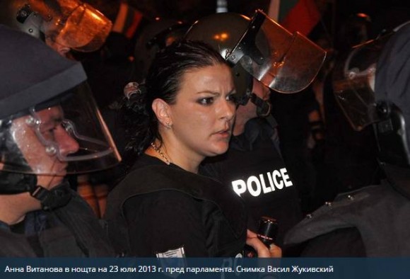 „Във Фейсбук десетки граждани, участвали на протестите свидетелстваха, че Витанова е била сред агресивните полицаи, използвала е спрей за мечки и електрошок срещу гражданите, а нейни колеги са се опитвали да я усмирят.“