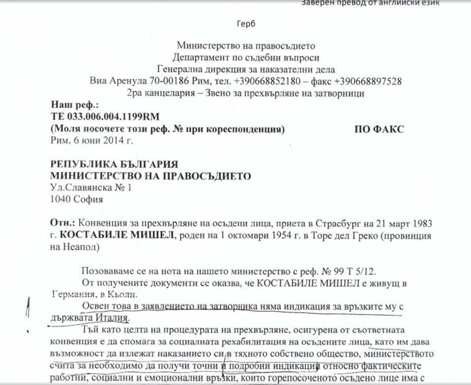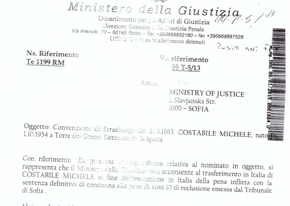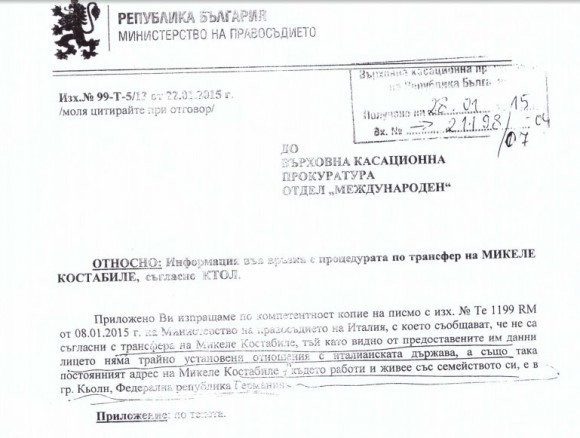 Пак се зачетох в Присъда № 34 от 16.10.2002 г. на Софийски окръжен съд: Софийски окръжен съд: „Признава подсъдимия Микеле Костабиле, италианец, гражданин на Република Италия, роден на 01.10.1954 г. в гр. Торе дел Греко – Италия, за виновен…”. Към това добавям непонятното мнение на италианските правосъдници: „Лицето няма трайно установени отношения с италианската държава”!?!