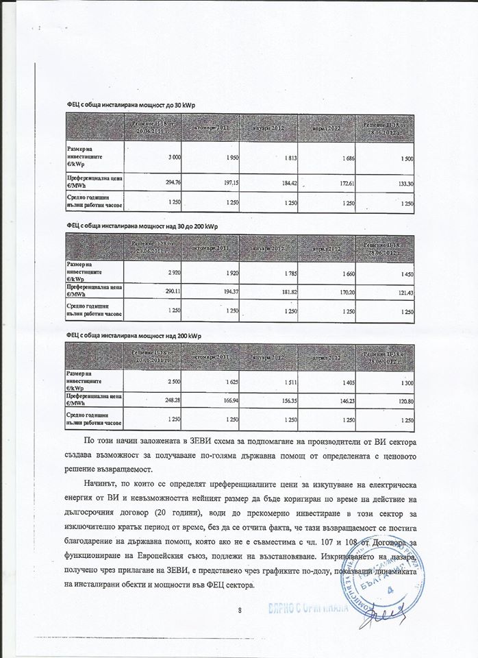 „След като изисках копие от писмо на Европейската комисия, във връзка с Жалба от шефа на ДКЕВР г-н Боян Боев, получих копие от самата жалба, в която има доста интересни факти. Все пак очаквам да получа и официално копие от отговора, този път от Министерството на финансите, което отговаря за Държавните помощи, където се казва, че преференциалните цени за изкупуване, фиксирани за доста дълги периоди (12 до 20 години) могат да представляват такава помощ!“– коментира съдържанието на тази жалба Роман Кендеров.