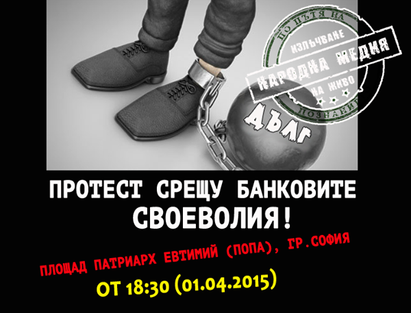 Днес в София се организира протест срещу неравноправните банкови практики в България, които поставят в неравностойно положение кредитополучателите. Сборен пункт за протеста е площад „Патриарх Евтимий“ (Попа), началният част е 18.30 ч. местно време.