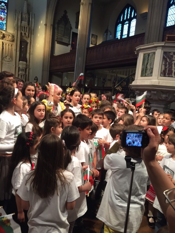 Един час и половина учениците пяха, рецитираха, танцуваха. Овациите бяха много. Но върхът на вечерта бе финалът, когато Поли пя за нас и с нас. Няма да ви разказвам повече подробности, вижте на този линк финала на вечерта, който естествено завърши с химна на Кирил и Методий (не се заглеждайте в качеството на филма, гледайте настроението):