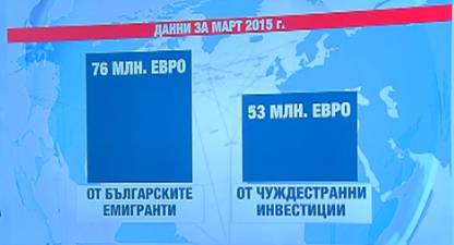 Статистиката показва, че до март т.г. от българските емигранти са дошли 76 млн. евро, а от чуждестранни инвестиции – 53 млн.