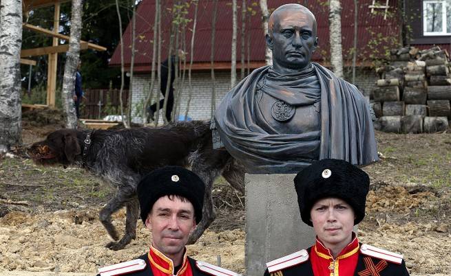 В същото време край Санкт Петербург бе поставен бюст на руския президент Владимир Путин, изваян като римския император Нерон. Така казаци от района благодарят на Путин, че е анексирал Крим към Русия.