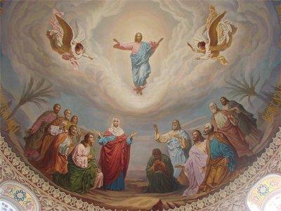 Според християнските вярвания, след смъртта и Възкресението си, в продължение на 40 дни Христос се среща с учениците си, за да им разказва за Божието царство. На 40-тия ден, придружен от тях и от Дева Мария, той се изкачва на Елеонския хълм до Ерусалим, и оттам, пред очите на всички, се възкачва на небето (Евангелия от Лука 24, 50-53; от Марко 16, 19), което се смята за край на Христовия път на земята. Въпреки това, Христос не изоставя хората, а им изпраща Светия Дух на Петдесетница и не престава да се застъпва за тях пред Бог Отец.