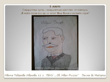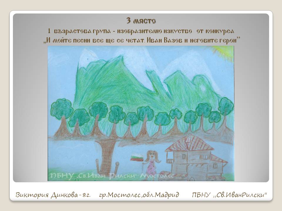 Асоциация „Балкан“ – Мадрид и Първо българско неделно училище „Св. Иван Рилски“ в гр. Мостолес обявиха резултатите от конкурса „И МОЙТЕ ПЕСНИ ВСЕ ЩЕ СЕ ЧЕТАТ. ИВАН ВАЗОВ И НЕГОВИТЕ ГЕРОИ“. В този конкурс са оценени изпратените творби на деца от български училища зад граница в два раздела – „Изобразително изкуство“ и „Литература“.