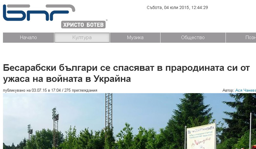 В предаването „Аларма“ на програма „Христо Ботев“ на БНР, излъчено на 3 юли т.г., водещата води разговор с бесарабски българи, които са се спасили от войната в Украйна като са дошли да живеят в град Гурково, Старозагорска област.