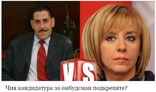 Двама са кандидатите за национален омбудсман на Р.България. Това са сегашният обществен защитник Константин Пенчев, който ще се бори за втори мандат (след номинация на Реформаторския блок), както и един от най-активните депутати на социалистите – Мая Манолова (след номинация на БСП).
