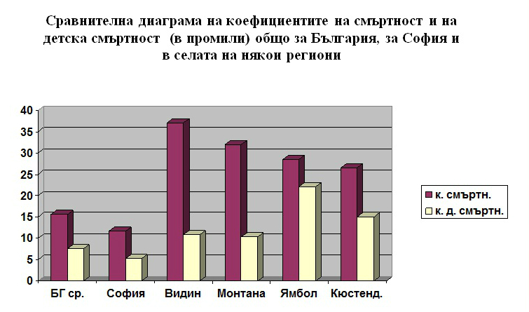 Смъртността у нас има тенденция да расте. Само за една година (2014 г. в сравнение с 2013 г.) коефициентът на смъртността се е увеличил с цели 4,9% (или с 49 промила), а при детската смъртност увеличението е с 4,1% (или 41 промила). Тези стойности на нарастване на смъртността в демографски план изглеждат апокалиптично, никъде по света няма даже приближаване до подобни статистически факти.