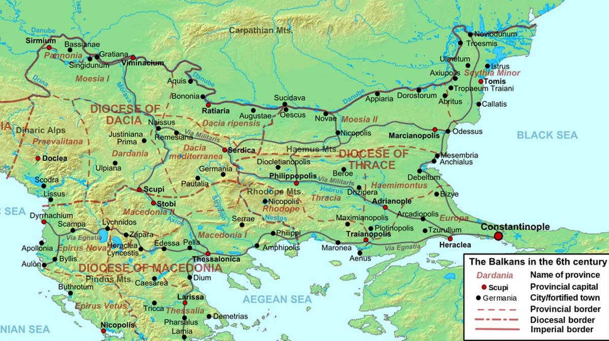 Карта с очертания на трасетата на древния път Виа Милитарис и други римски пътища. Източник: Уикипедия