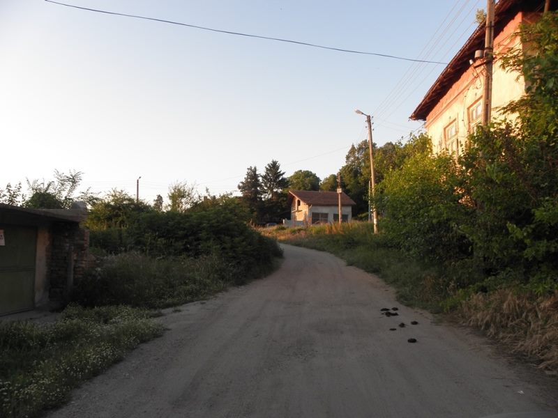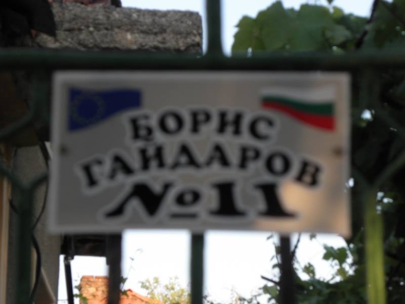Уличното осветление е през стълб, но тук-там има изгорели крушки или пък стълб липсва. Кофи за боклук няма, явно е, че народът е свел до НУЛА битово домакинския отпадък, което говори за голяма култура в Екологията и рециклирането на отпадъци. За да завърша пълното описание на улицата и обстановката, ще добавя и липсата на водопровод за питейна вода, въпреки изградения такъв, но никога недостигнал до тази улица. За канализация няма да споменавам въобще, този дума там е нещо като научна фантастика. Хората отдавна са открили удобството на външната тоалетна с голяма яма отдолу. Естествено от съображение за сигурност и цел намаляване на кражбите, електромерите на къщите висят там по стълбовете, където обикновено е мястото на крушките. Но пък Енергото събира номерата им on-line, странно как като повечето хора тук са с мобилни телефони само, защото при всеки вятър стационарните не работят. Ето и зелената порта. НАЙ-НАКРАЯ у дома. Табелката върху леко наклонената напред врата е уникална. Освен номера на къщата, има и две знамена. Българското и това на Европейския съюз. Може би това бе единственото нещо, което показа тази ни връзка с Европа.