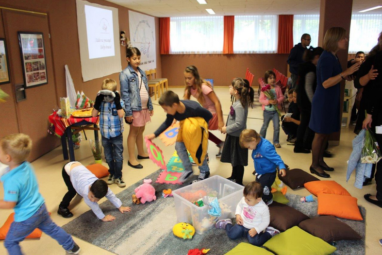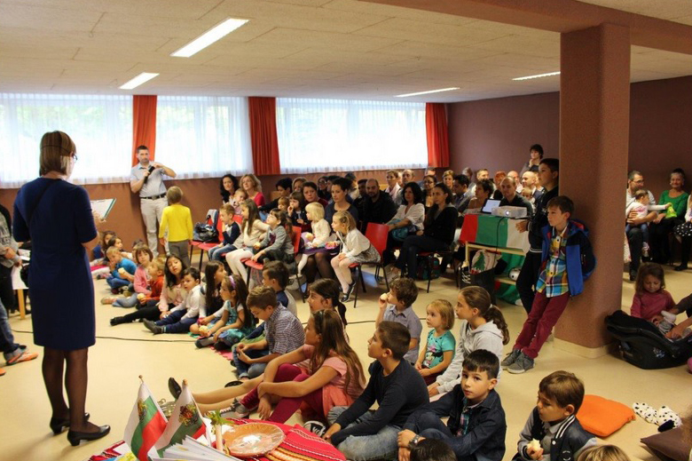 Най-мъничките от Бебешката група насядаха в старателно подготвен за тях кът с възглавнички и плюшени играчки. Децата от подготвителната група заеха първия ред на специално подреден за тях пъзел с българската азбука. По стените се кипреха картини, изобразяващи богатството на българския фолклор и красотите на България. Покривка с народни шевици, менче със здравец и