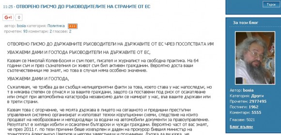 Казвам се Николай Колев-Босия и съм поет, писател и журналист на свободна практика. На 64 години съм и през съзнателния си живот съм бил активен гражданин. Вероятно доста ваши съотечественици ме знаят, но това в случая няма особено значение.
